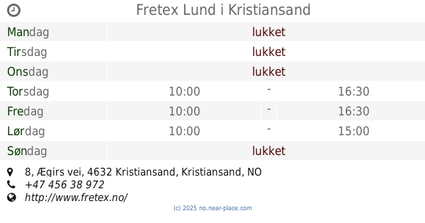 | Søndag | lukket | |||||